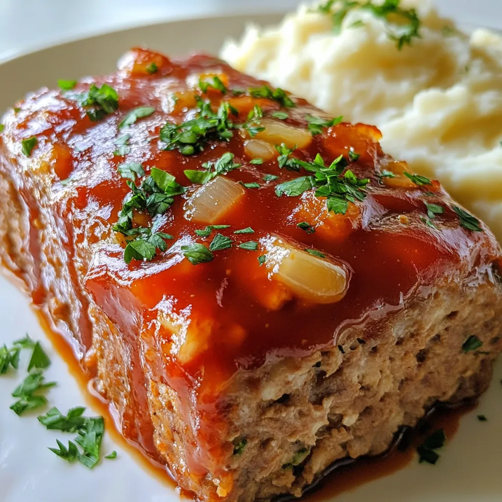 For an appetizing presentation, slice the meatloaf and arrange it on plates. Garnish with a sprinkle of chopped parsley and serve with mashed potatoes or steamed vegetables.
