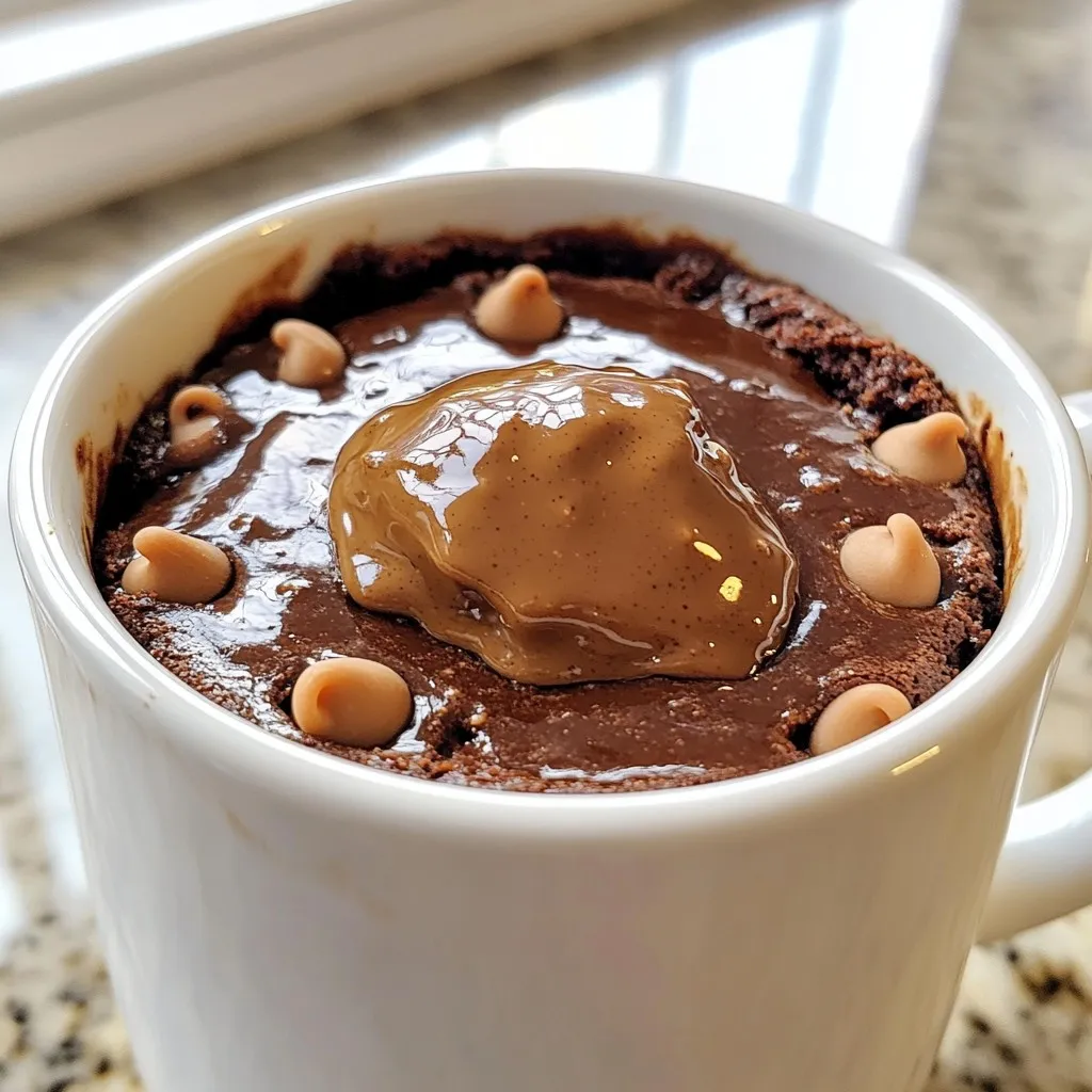- 4 tablespoons all-purpose flour - 4 tablespoons granulated sugar - 2 tablespoons unsweetened cocoa powder - 1/8 teaspoon baking powder - 1/8 teaspoon salt - 3 tablespoons milk (dairy or non-dairy) - 2 tablespoons vegetable oil - 1 tablespoon vanilla extract - 1 tablespoon creamy peanut butter - Optional: Extra chocolate chips for topping To make your chocolate peanut butter mug cake, you need simple ingredients. These are easy to find in most kitchens. All-purpose flour gives the cake its structure. Sugar adds sweetness. Cocoa powder brings rich chocolate flavor. Baking powder helps the cake rise. Salt balances the sweetness and enhances flavor. You can use dairy or non-dairy milk based on your taste. Vegetable oil keeps the cake moist. The vanilla extract adds a nice aroma. Creamy peanut butter makes the cake special. It creates a gooey center that melts in your mouth. If you want to make it even better, add some chocolate chips on top. They melt when cooked and make the cake extra chocolatey. You can also add nuts or whipped cream as toppings for a fun twist. Use your favorite toppings to make this mug cake your own! {{ingredient_image_2}} 1. Mixing dry ingredients Grab a microwave-safe mug, at least 12oz in size. Add 4 tablespoons of all-purpose flour, 4 tablespoons of granulated sugar, 2 tablespoons of unsweetened cocoa powder, 1/8 teaspoon of baking powder, and 1/8 teaspoon of salt. Use a small whisk or fork to blend these dry ingredients well. Make sure there are no lumps. 2. Adding wet ingredients Now, pour in 3 tablespoons of milk, 2 tablespoons of vegetable oil, and 1 tablespoon of vanilla extract. Stir the mixture until it is smooth. You want all the wet ingredients to mix evenly with the dry ones. This step is key for fluffy cake. 3. Incorporating creamy peanut butter Take 1 tablespoon of creamy peanut butter and spoon it right into the center of your batter. Do not stir it in! Leaving it on top will create a gooey and tasty center when the cake cooks. 4. Cooking in the microwave If you love chocolate, add some extra chocolate chips on top for a treat! Then, pop the mug in the microwave. Cook it on high for 40 to 60 seconds. Start checking at 40 seconds. The cake should rise and feel set but still soft in the middle. Let it cool for a minute before you enjoy it. Eating it straight from the mug is the best part! To make a great mug cake, start with the right mug size. I recommend using a mug that holds at least 12 oz. This size helps the cake rise without overflowing. Next, remember that microwaves vary. You might need to adjust cooking time. Start with 40 seconds, then check for doneness. The cake should rise and feel set but still soft inside. If it needs more time, add 10 seconds at a time. For serving suggestions, you can add a dollop of whipped cream on top. Crushed peanuts also make a nice touch. Enjoy your cake warm for the best taste. You can even drizzle some chocolate syrup over it for extra sweetness! Pro Tips Choose the Right Mug: Make sure to use a microwave-safe mug that is at least 12oz in size to allow the cake to rise without overflowing. Customize Your Flavor: Don't hesitate to add a pinch of cinnamon or a splash of espresso to the batter for an extra depth of flavor. Monitor Cooking Time: Every microwave is different, so start checking your mug cake around the 40-second mark to avoid overcooking. Let It Cool: Allow the mug cake to cool for about a minute before enjoying, as it will be extremely hot right out of the microwave. {{image_4}} You can easily change this chocolate peanut butter mug cake. Start by switching the nut butter. Try almond butter or cashew butter for a new taste. Each nut butter brings a unique flavor. Next, add fruits for a fresh twist. Chopped bananas or berries work great in the mix. They bring natural sweetness and moisture. You can also mix in spices like cinnamon or a dash of sea salt. If you want a vegan version, swap regular milk for plant-based milk. Use coconut oil instead of vegetable oil. For gluten-free options, replace all-purpose flour with almond flour or a gluten-free blend. Feel free to experiment! The cake is a blank canvas. Try your favorite flavors to create something special. Enjoy your delicious creations! If you have leftover Chocolate Peanut Butter Mug Cake, store it in the fridge. Place it in an airtight container. This keeps it fresh for up to two days. To reheat, pop it in the microwave for about 10-15 seconds. Check if it's warm enough. If not, add a few more seconds. You can also freeze it for longer storage. Wrap the mug cake tightly in plastic wrap. Then, place it in a freezer-safe bag. It’ll last for up to a month. When you're ready to eat it, let it thaw in the fridge overnight. Reheat it in the microwave as mentioned above. For serving, I like to add a bit of whipped cream or extra chocolate chips. This adds a nice touch after storage. Enjoy it warm for the best taste! Can I make this mug cake in the oven? Yes, you can bake this mug cake in the oven. Use a small oven-safe dish instead of a mug. Preheat your oven to 350°F (175°C). Pour the batter into the dish and bake for about 10-12 minutes. Check for doneness by inserting a toothpick. It should come out clean. How can I make it less sweet? To reduce the sweetness, cut back on the granulated sugar. You can use 2 tablespoons instead of 4. Alternatively, try using unsweetened cocoa powder. This will also help balance the flavors. Is there a way to make this recipe healthier? Yes, you can make this mug cake healthier. Use whole wheat flour instead of all-purpose flour. Substitute sugar with a natural sweetener like honey or maple syrup. You can also use a nut butter that has no added sugar. This keeps the cake tasty while making it more nutritious. You learned how to make a tasty chocolate peanut butter mug cake. We covered all the ingredients, step-by-step instructions, and helpful tips. I shared fun variations, storage tips, and answers to your comm