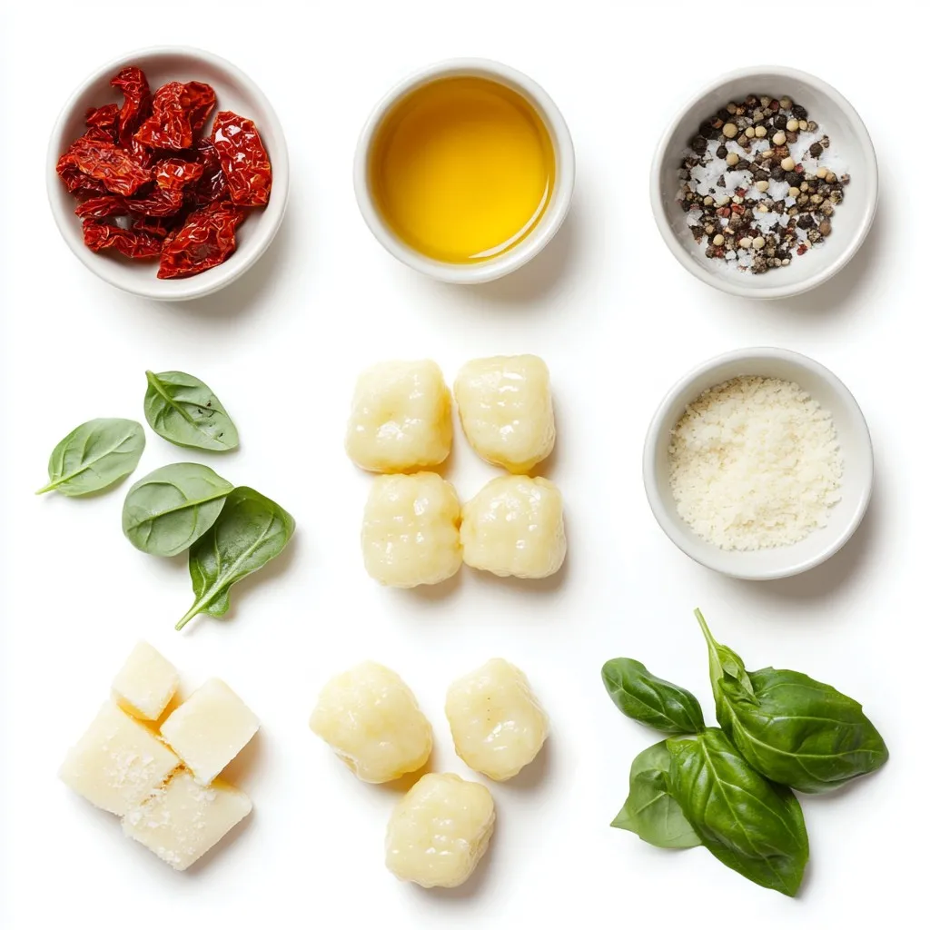 Gather these ingredients before you start cooking. The gnocchi is the star of the dish. You can use store-bought or make it yourself for a fun challenge. Sun-dried tomatoes add a rich, tangy flavor. Heavy cream makes the sauce creamy and smooth.