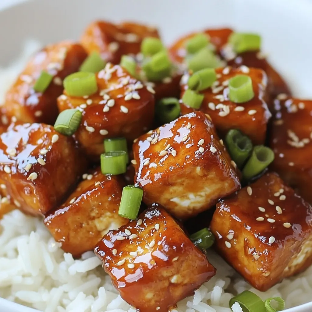 - Firm Tofu - Cornstarch - Vegetable Oil - Honey - Minced Garlic - Soy Sauce - Rice Vinegar - Sesame Oil - Freshly Grated Ginger - Green Onions - Sesame Seeds To make Crispy Honey Garlic Tofu, start with firm tofu. The texture is key for crunch. You will need cornstarch to coat the tofu. This helps it fry up crispy. Vegetable oil is essential for frying. Honey adds sweetness to the dish. Minced garlic packs a flavorful punch. Soy sauce gives a savory depth. Rice vinegar adds a tangy touch. Sesame oil brings a nutty flavor. Freshly grated ginger gives a fresh zest. Green onions add a nice pop of color. Finally, sesame seeds are perfect for garnishing. Each ingredient plays a role in creating a delightful meal. {{ingredient_image_2}} Start by draining the tofu. Remove as much water as you can. Press it tightly for about 15 minutes. This step is key for a crispier bite. After pressing, cut the tofu into bite-sized cubes. Aim for even pieces to help them cook evenly. In a mixing bowl, toss the cubed tofu with cornstarch. Make sure each piece is coated well. This layer helps create that crispy texture we all love. Be gentle while tossing to keep the tofu intact. Heat the vegetable oil in a non-stick skillet over medium-high heat. Wait until the oil shimmers. Carefully place the tofu cubes in a single layer. Avoid overcrowding the pan. Fry each side for about 3-4 minutes until golden brown and crispy. Turn them occasionally for even cooking. Once done, transfer them to a paper towel-lined plate to soak up any extra oil. In a separate bowl, combine honey, minced garlic, soy sauce, rice vinegar, sesame oil, and freshly grated ginger. Whisk until it’s smooth and well-mixed. This sauce brings all the flavors together. In the same skillet, reduce the heat to medium. Pour in the honey garlic sauce and let it simmer for about one minute. You want it to bubble and smell amazing. Carefully add the crispy tofu back into the skillet. Gently toss to coat each piece in the sauce. Cook for another 2-3 minutes until the sauce thickens and clings to the tofu. Remove the skillet from heat and transfer the glazed tofu to a serving dish. For a lovely touch, garnish with sliced green onions and a sprinkle of sesame seeds. This adds crunch and visual appeal. Serve it beautifully on a colorful plate with fluffy jasmine rice. Enjoy every delightful bite! - Importance of Pressing Tofu Pressing tofu is key. It removes extra moisture, which helps the tofu get crispy. Use a tofu press or wrap it in a clean towel. Place something heavy on top for about 15-30 minutes. This step ensures your tofu is firm and ready to fry. - Tips for Coating Coat the tofu gently with cornstarch. Toss it in a bowl until each piece is covered. Be careful not to break the tofu. A thin layer gives a nice crunch when fried. Avoid clumps to ensure even cooking. - Suggestions for Additional Seasonings Add red pepper flakes for a spicy kick. You can also use smoked paprika for a deeper flavor. Fresh herbs like basil or cilantro can enhance the taste. Experiment with these to find what you love best. - Pairing Ideas with Sides Serve your crispy honey garlic tofu with fluffy jasmine rice. Steamed broccoli or snap peas add color and nutrition. You can also pair it with a fresh cucumber salad for a light touch. Pro Tips Press Tofu Well: Ensure the tofu is pressed thoroughly to remove as much moisture as possible. This helps achieve a crispier texture when frying. Control the Heat: Fry the tofu on medium-high heat. Too low will make it soggy, while too high can burn it. Find the sweet spot for perfect crispiness! Fresh Ingredients Matter: Use fresh garlic and ginger for the best flavor in your sauce. They will enhance the overall taste of the dish significantly. Garnish Generously: Don't skimp on the green onions and sesame seeds! They add not only flavor but also a beautiful presentation to your dish. {{image_4}} Want some heat? You can add red pepper flakes. Just mix them into the sauce. Start with a pinch and taste it. You can increase the amount based on your spice level. The spicy flakes will give the dish a nice kick. They blend well with the sweet honey. This variation makes your tofu even more exciting! If you want to keep it vegan, try substituting agave nectar. It has a similar sweetness to honey. Use the same amount as you would honey. Agave nectar will create a smooth sauce. It keeps the dish sweet and tasty. This way, you can enjoy honey garlic tofu without using animal products! Not a fan of tofu? No problem! You can use tempeh or seitan instead. Tempeh has a nutty flavor and a firm texture. Cut it into similar cubes. Seitan is chewy and absorbs flavors well. Both options work great in this dish. They will give you a different texture while keeping the taste delicious! To store your crispy honey garlic tofu, place it in an airtight container. Make sure it cools completely before sealing. This helps to keep it fresh. Store it in the fridge for up to three days. The tofu may soften when stored, but the flavor will still be great. To reheat your tofu while keeping it crispy, use an oven or an air fryer. Preheat the oven to 375°F (190°C). Spread the tofu on a baking sheet in a single layer. Bake for about 10 minutes or until it’s hot and crispy again. If using an air fryer, set it to 350°F (175°C) and cook for about 5-7 minutes. Avoid using a microwave, as it will make the tofu soggy. You can freeze crispy honey garlic tofu, but it may lose some texture. To freeze, place the cooled tofu in a single layer on a baking sheet. Freeze for about an hour or until firm. Then, transfer to a freezer-safe bag. It can stay frozen for up to three months. To thaw, move the tofu to the fridge overnight. Reheat it using the methods mentioned above for the best results. To make tofu crispy, start with firm tofu. You need to drain and press it well. This removes excess moisture. Cut the tofu into even cubes. Toss the cubes in cornstarch. This coating he
