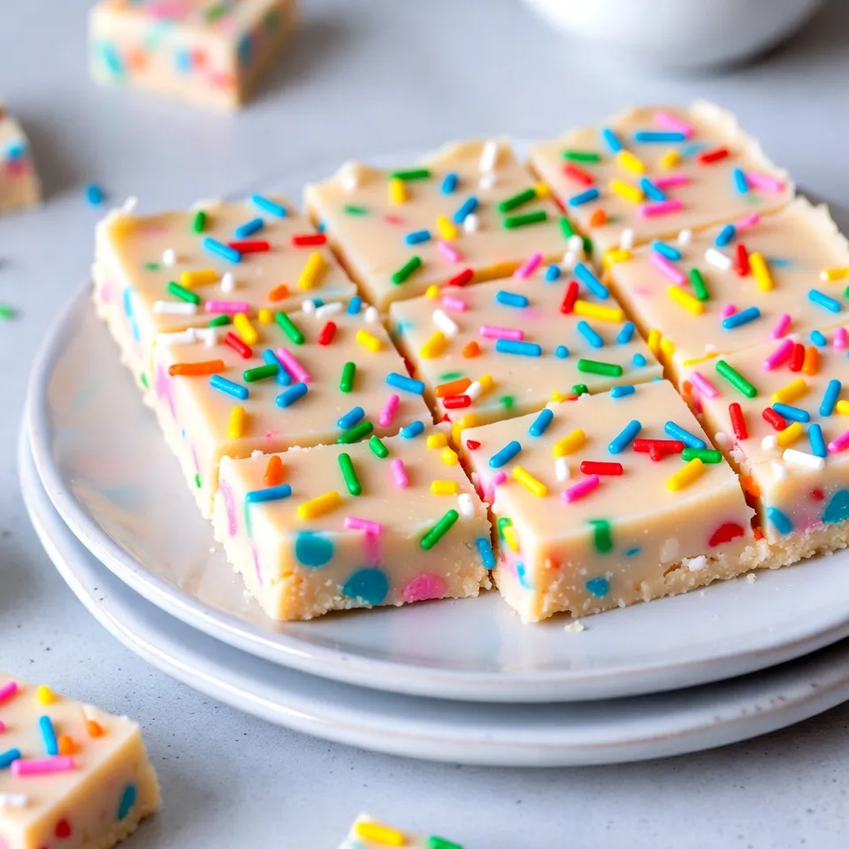 A delightful and colorful fudge perfect for birthday celebrations, packed with white chocolate, cake mix, and sprinkles.