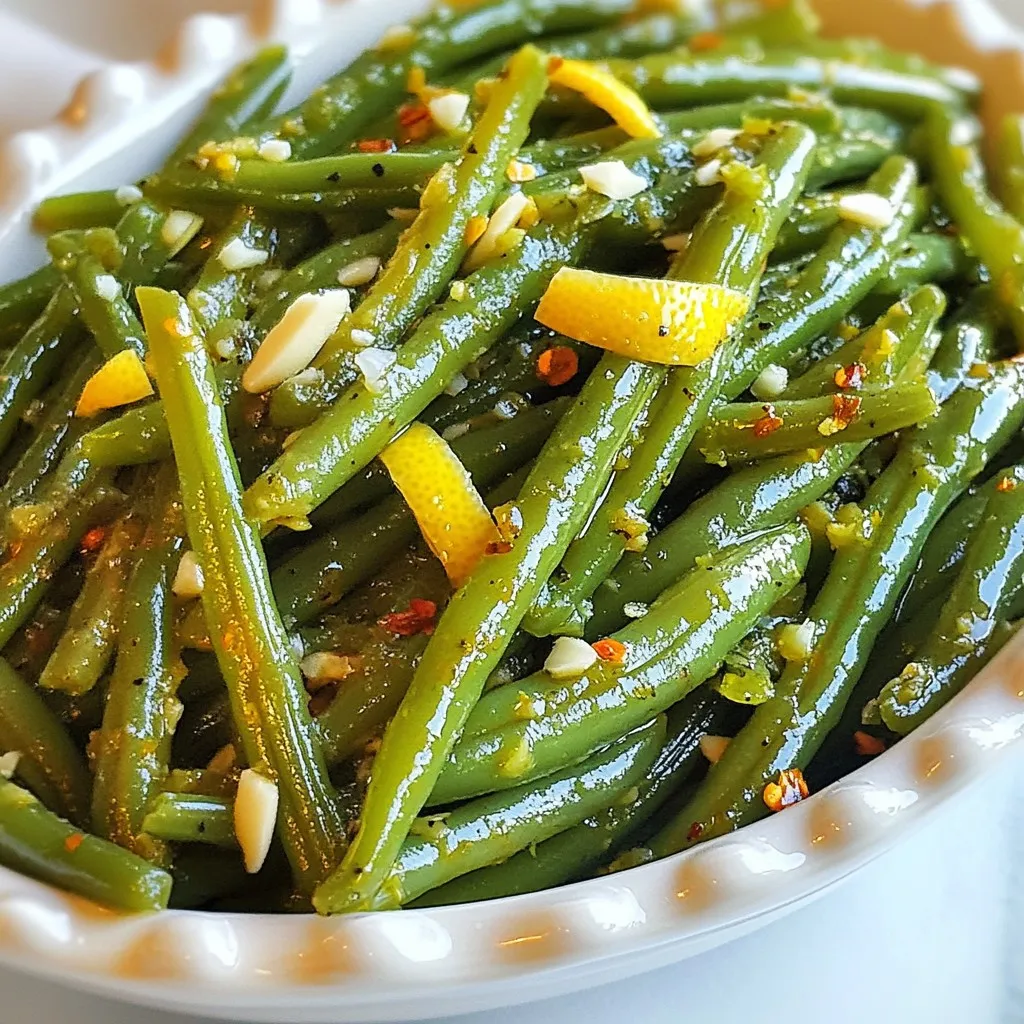 These ingredients come together to create a bright and buttery dish. The fresh green beans give a crisp texture. The garlic adds depth, while lemon brightens the flavor. You can adjust the salt and pepper to your taste. If you like heat, the red pepper flakes are a fun touch. Lastly, the sliced almonds add a nice crunch. This combination makes for a side dish everyone will love.
