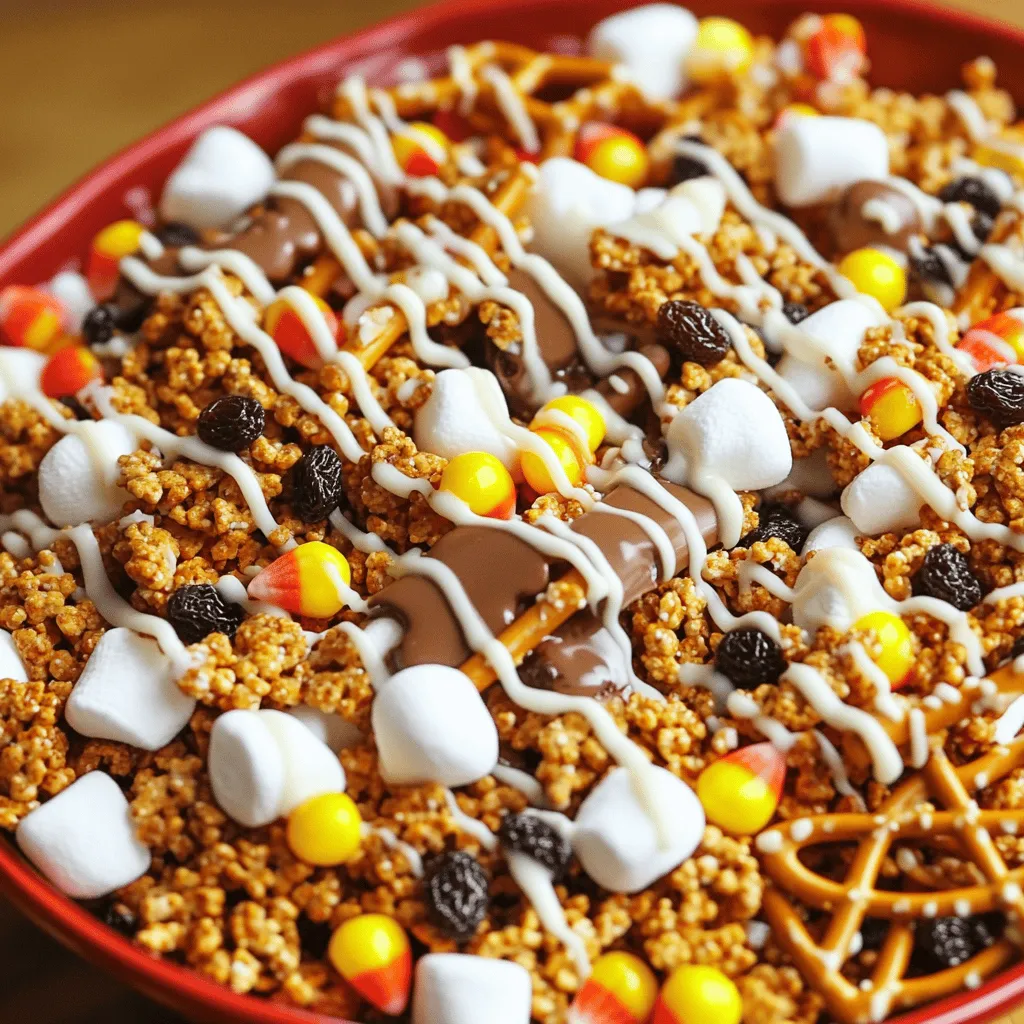 Candy corn adds a pop of color and chewy texture. Yogurt-covered raisins bring a creamy twist. If you enjoy nuts, toss in some chopped pecans for added crunch.