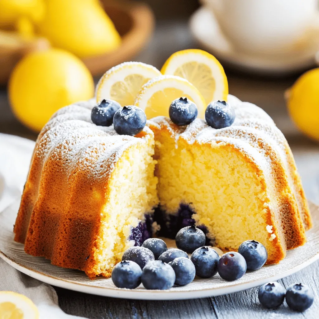 ![For this lemon blueberry pound cake, gather these simple ingredients: - 1 ½ cups all-purpose flour - 1 teaspoon baking powder - ½ teaspoon baking soda - ½ teaspoon salt - ¾ cup unsalted butter, softened - 1 cup granulated sugar - 3 large eggs - 2 teaspoons vanilla extract - 2 tablespoons lemon zest (grated from about 1 large lemon) - ½ cup sour cream - 1 cup fresh blueberries (plus additional for garnish) - 2 tablespoons freshly squeezed lemon juice Each ingredient plays a key role. The flour gives structure. The butter adds richness. Eggs bind everything together. The sugar sweetens and helps with browning. The sour cream keeps the cake moist. If you don’t have sour cream, try Greek yogurt. It works well and adds a nice tang. For a dairy-free option, use coconut oil instead of butter. You can also substitute fresh blueberries with frozen ones. Just make sure to add them without thawing. These ingredients create a cake that’s soft, moist, and bursting with flavor. You can find the full recipe above to guide you through the baking process. 1. Preheat your oven to 350°F (175°C). Grease a 9x5 inch loaf pan with butter or cooking spray. This step ensures your cake does not stick. 2. In a medium bowl, mix the dry ingredients. Combine 1 ½ cups of flour, 1 teaspoon of baking powder, ½ teaspoon of baking soda, and ½ teaspoon of salt. Whisk them together well and set aside. 3. In a large bowl, cream together ¾ cup of softened butter and 1 cup of sugar. Use an electric mixer on medium speed for 3-5 minutes. The mix should turn light and fluffy. 4. Add 3 large eggs one at a time. Make sure each egg mixes in fully before the next one. Then stir in 2 teaspoons of vanilla extract and the zest of 1 large lemon. Mix until smooth. 5. Gradually add the dry mix to the wet mix. Alternate this with ½ cup of sour cream and 2 tablespoons of lemon juice. Start and end with the dry mix. Mix just until combined to keep your cake tender. 6. Gently fold in 1 cup of fresh blueberries with a spatula. Be careful not to break the berries. This helps them hold their shape in the cake. 7. Pour the batter into the greased loaf pan. Spread it evenly. Tap the pan on the counter to release any air bubbles. - Bake your cake in the oven for 50-60 minutes. This time helps the cake rise and cook evenly. - To check if the cake is done, insert a toothpick into the center. If it comes out clean, your cake is ready. If the top browns too fast, cover it with aluminum foil for the last 15 minutes. - After removing the cake from the oven, let it cool in the pan for 10 minutes. Then, move it to a wire rack to cool completely before slicing. - For a lovely presentation, slice the cooled cake and place it on a nice platter. Sprinkle powdered sugar on top and add fresh blueberries for a beautiful finish. This makes your lemon blueberry pound cake even more inviting. Enjoy your delicious treat! To make a great lemon blueberry pound cake, start with room temperature ingredients. This includes butter, eggs, and sour cream. Room temperature items blend better. They create a smooth batter. A smooth batter bakes more evenly. Next, focus on mixing techniques. Cream the butter and sugar until light and fluffy. This step adds air to your batter. It helps the cake rise well. Mix in the eggs one at a time. This keeps the mixture stable. Finally, fold in the dry ingredients gently. Over-mixing can make your cake dense. To boost flavor, use a mix of citrus and berries. The tartness of lemon pairs well with blueberries. This mix adds brightness to the cake. You can also try other berries like raspberries or blackberries. Each berry brings a unique taste. Consider adding spices for extra warmth. A pinch of cinnamon or nutmeg can enhance the cake. You might also try adding almond extract for a nutty twist. These small changes can take your cake to the next level. For the full recipe, check out Lemon Blueberry Bliss Pound Cake. {{image_4}} You can switch up the berries in this recipe. Try raspberries or strawberries for a twist. Each berry brings its unique flavor. The tartness of raspberries contrasts nicely with the sweet cake. Strawberries add a juicy sweetness that pairs well with the lemon. For those who need gluten-free options, use a gluten-free flour blend. Just make sure it has xanthan gum for structure. You can also make this cake dairy-free. Swap out sour cream for a dairy-free yogurt or coconut cream. This keeps the cake moist and tasty. Serve this lemon blueberry pound cake warm or at room temperature. Top it with whipped cream or a scoop of vanilla ice cream for extra joy. The cold creaminess balances the bright flavors of the cake. If you have leftover pound cake, get creative! Use it for French toast or as a base for a berry trifle. Layer slices with whipped cream and fresh fruit for a stunning dessert. You can also toast slices for a crunchy treat. To keep your lemon blueberry pound cake fresh, wrap it tightly. I recommend using plastic wrap. This method helps seal in moisture and flavor. You can also place it in an airtight container. Make sure to store it at room temperature. This cake stays good for about three to four days. For longer storage, freeze it. To freeze the pound cake, let it cool completely. Then, wrap it in plastic wrap. After that, place it in a freezer bag. Be sure to squeeze out excess air. This will help keep the cake fresh. You can freeze it for up to three months. When you're ready to enjoy it, take it out of the freezer. Place it in the fridge to thaw overnight. You can also leave it at room temperature for a few hours. This helps maintain the flavor and texture. Enjoy your delicious lemon blueberry pound cake later! For the full recipe, check back to the main recipe section. Why did my pound cake sink in the middle? Your pound cake may sink due to a few reasons. One common cause is underbaking. If the cake is not fully cooked, it can collapse in the middle. Another reason is overmixing the batter.