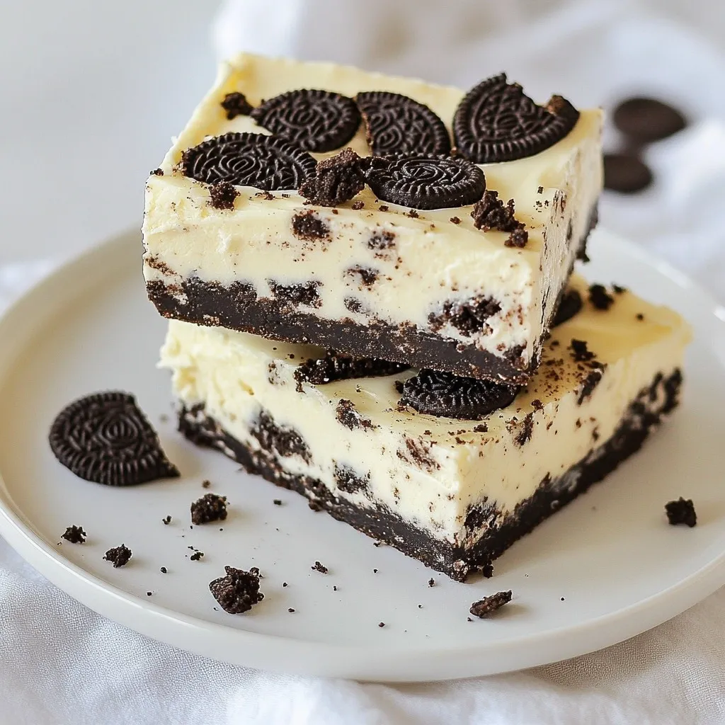 Delicious and creamy cheesecake bars made with Oreo cookies, perfect for a no-bake dessert.