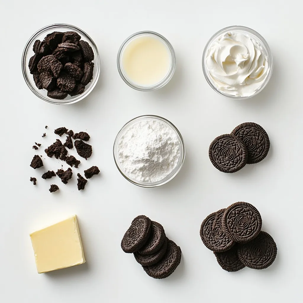 Oreo cookies: These cookies form the base and add rich chocolate flavor. The fine crumbs mix well with butter to create a firm crust.
