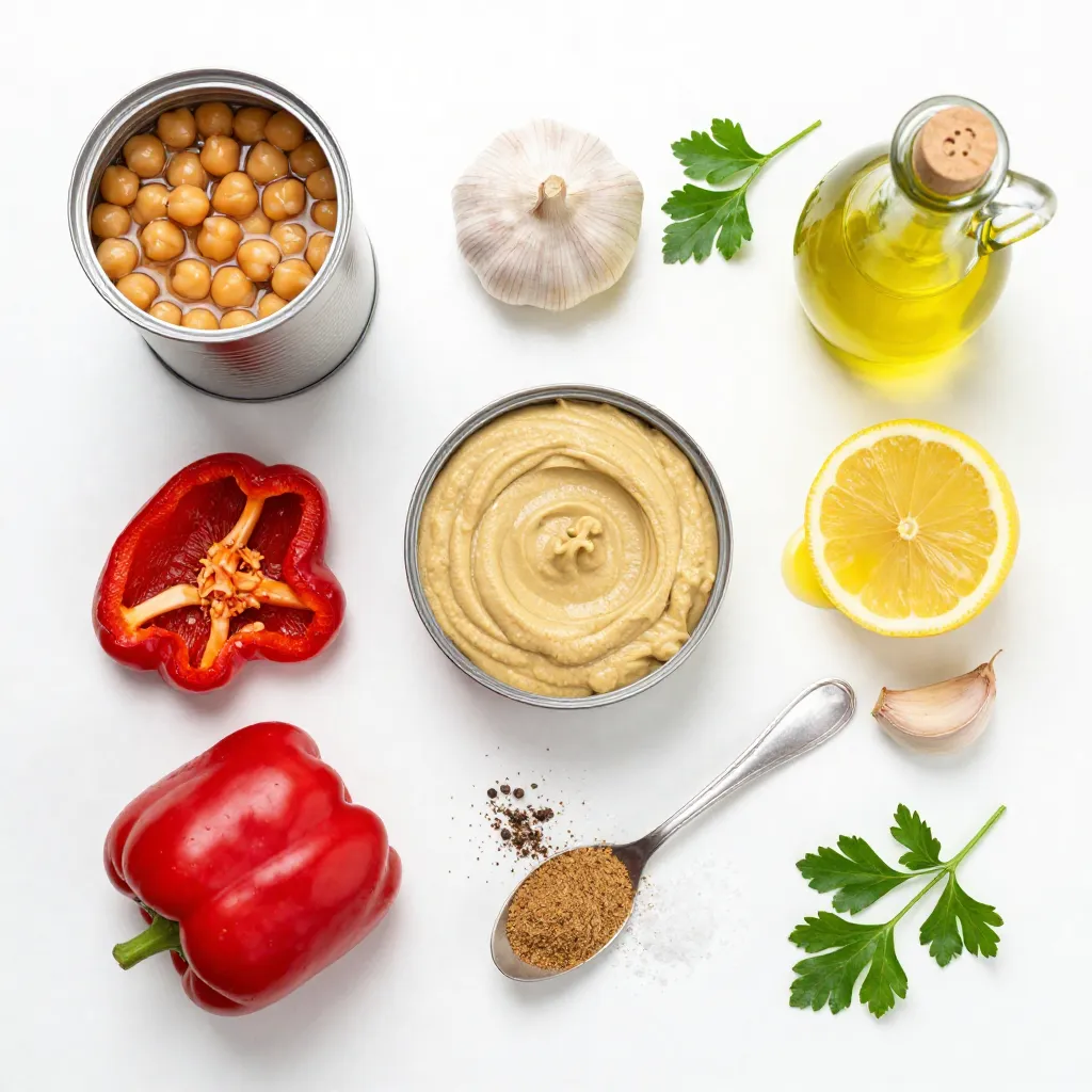 - 1 can (15 oz) chickpeas, drained and thoroughly rinsed - 2 large roasted red peppers (store-bought or homemade) - 3 tablespoons tahini Chickpeas are the base of this hummus. They add creaminess and protein. I prefer using canned chickpeas for ease. Just drain and rinse them well. Roasted red peppers bring a sweet, smoky flavor. You can buy them in a jar or roast your own. Tahini gives hummus its rich, nutty taste. It's made from ground sesame seeds. - 2 tablespoons extra-virgin olive oil, plus extra for drizzling - 2 tablespoons freshly squeezed lemon juice - 1 clove garlic, finely minced Olive oil adds smoothness and richness. It also enhances the flavor of every bite. Fresh lemon juice gives a tangy kick, brightening the dish. Garlic adds depth and warmth to the hummus. Use fresh garlic for the best taste. - 1 teaspoon ground cumin - Kosher salt and freshly cracked pepper to taste - Smoked paprika and finely chopped fresh parsley for garnish Ground cumin adds an earthy note. It pairs well with the sweetness of the peppers. Salt and pepper are key to enhancing all the flavors. Smoked paprika adds a lovely color and a hint of smoke. Fresh parsley adds a pop of green and freshness on top. {{ingredient_image_2}} You can use jarred roasted red peppers or make your own. Jarred peppers are quick and easy. Just drain them well to avoid too much moisture in your hummus. If you want to roast fresh peppers, here’s how to do it: 1. Broil the Peppers: Place fresh red peppers under the broiler. Turn them often until the skin is black and blistered. This should take about 15 minutes. 2. Steam and Peel: After broiling, put the peppers in a bowl and cover it with plastic wrap. Let them steam for 15 minutes. This helps loosen the skin. Once they cool, peel off the blackened skin, remove the seeds, and slice them. Next, gather your ingredients for the food processor: - 1 can (15 oz) chickpeas, drained and rinsed - 2 large roasted red peppers - 3 tablespoons tahini - 2 tablespoons extra-virgin olive oil - 2 tablespoons lemon juice - 1 clove garlic, minced - 1 teaspoon ground cumin - Salt and pepper to taste It's crucial to drain the chickpeas well. This step keeps the hummus from becoming too watery. Now it’s time to blend! Add all your ingredients to the food processor. Pulse the mixture until it’s smooth and creamy. This might take a minute or two. If you find the hummus too thick, slowly add a tablespoon of water. Blend after each addition until it reaches your desired texture. After blending, taste your hummus. You may want to add more salt, pepper, or lemon juice. Adjust the flavors to suit your taste. This step is key to making the hummus just right. To serve, spoon the hummus into a nice bowl. Create a small well in the center. Drizzle extra olive oil on top. For a colorful finish, sprinkle smoked paprika and chopped parsley over it. For a fun touch, serve the hummus with warm pita bread or crunchy veggie sticks. You can also place it on a rustic wooden board for a more inviting setup. To get a creamy hummus, start with the right chickpeas. Use canned chickpeas for ease. Drain and rinse them well. This step removes extra salt and helps with texture. You want your hummus smooth, not chunky. If your hummus is too thick, add a little water. Blend after each addition. This helps you control the thickness. Avoid adding too much at once. It’s easy to go overboard. Common mistakes include not blending enough. If you stop too early, your hummus will be gritty. Remember to scrape the bowl sides while blending. This ensures everything mixes well. If you don’t have tahini, use sunflower seed butter. It gives a similar creaminess. For olive oil, try avocado oil for a different flavor. This can make your hummus taste unique. You can also adjust spices. Add a pinch of cayenne pepper for heat. Or mix in fresh herbs like basil or cilantro for a fresh twist. Experiment with flavors to find your favorite. Presentation matters! Serve your hummus in a deep bowl. Create a little well in the center. Drizzle extra olive oil there for a nice touch. For garnishes, sprinkle smoked paprika on top. This adds color and flavor. Chopped parsley brightens up the dish too. To serve, pair your hummus with warm pita or crunchy veggie sticks. You can arrange these on a wooden board for a rustic look. Small bowls also work well for an inviting spread. Pro Tips Choose Quality Ingredients: Opt for high-quality tahini and fresh lemons for the best flavor. The quality of your ingredients directly impacts the final taste of your hummus. Experiment with Flavors: Feel free to add other ingredients like roasted garlic, sun-dried tomatoes, or herbs to customize the flavor of your hummus and make it uniquely yours. Perfect Texture: To achieve a silky smooth hummus, consider peeling the chickpeas. While it's an extra step, it can result in a creamier consistency. Storage Tips: Store any leftover hummus in an airtight container in the refrigerator. Drizzle a layer of olive oil on top to keep it fresh for up to a week. {{image_4}} You can easily change the flavor of your hummus. One great way is to add fresh herbs. Herbs like basil or cilantro can add a bright taste. Simply chop them finely and blend them in. If you love spice, try adding jalapeños. You can use fresh or pickled ones for a kick. Just add a small amount first, then blend and taste. Adjust until it’s just right for you. Making hummus is easy for different diets. This recipe is naturally gluten-free. All the main ingredients are safe for those avoiding gluten. For those who follow a vegan diet, this hummus is perfect. Each ingredient is plant-based, so you can enjoy it without worry. You can share it with friends who have dietary needs too! Hummus can be fun to change with the seasons. You can add seasonal vegetables or herbs. In spring, consider adding fresh peas or mint. In fall, roasted butternut squash or sage can give a warm flavor. Think about what’s fresh at yo