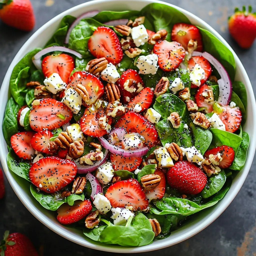 A refreshing salad featuring fresh spinach, strawberries, and a delightful poppyseed dressing.