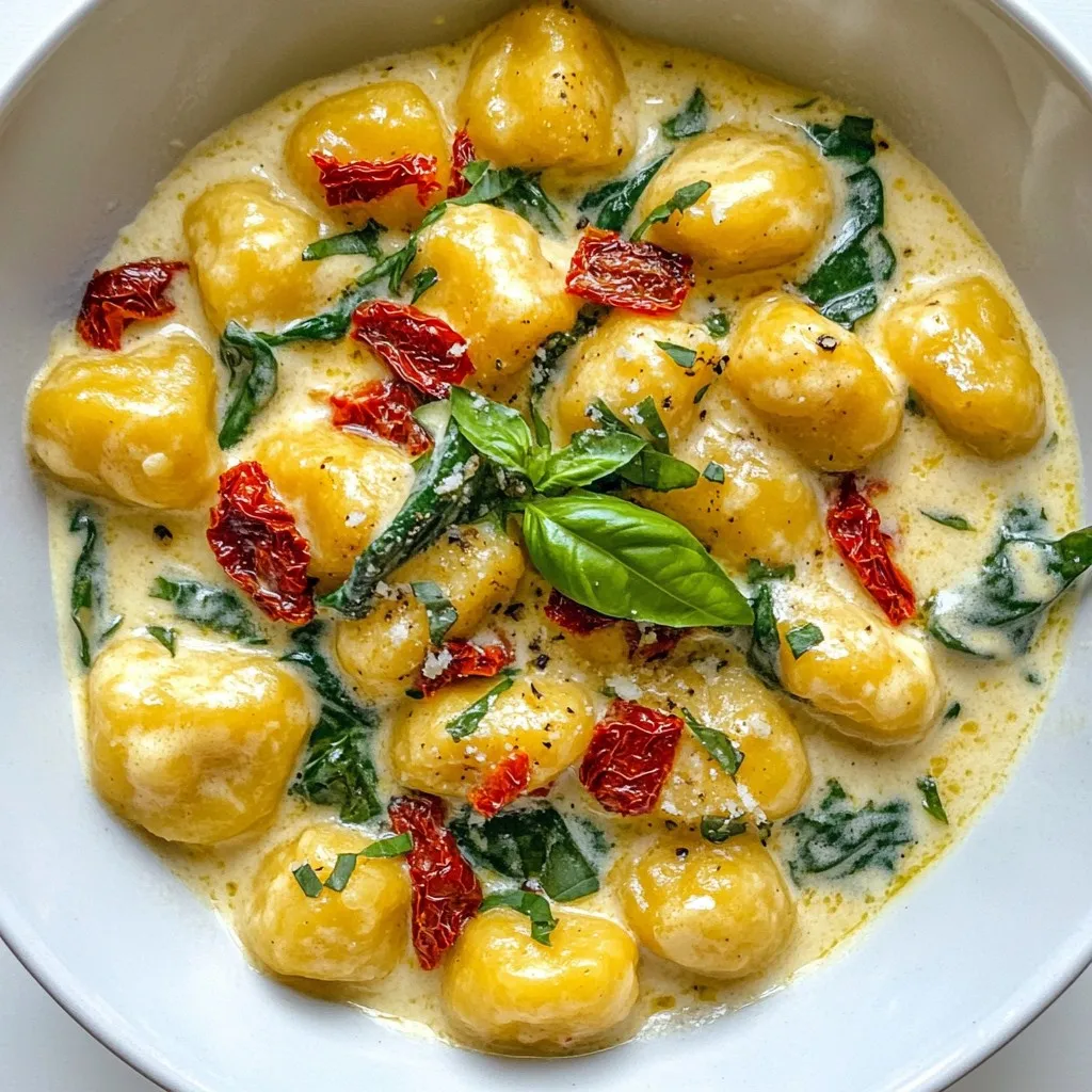 A creamy and flavorful gnocchi dish featuring sun-dried tomatoes and fresh spinach.