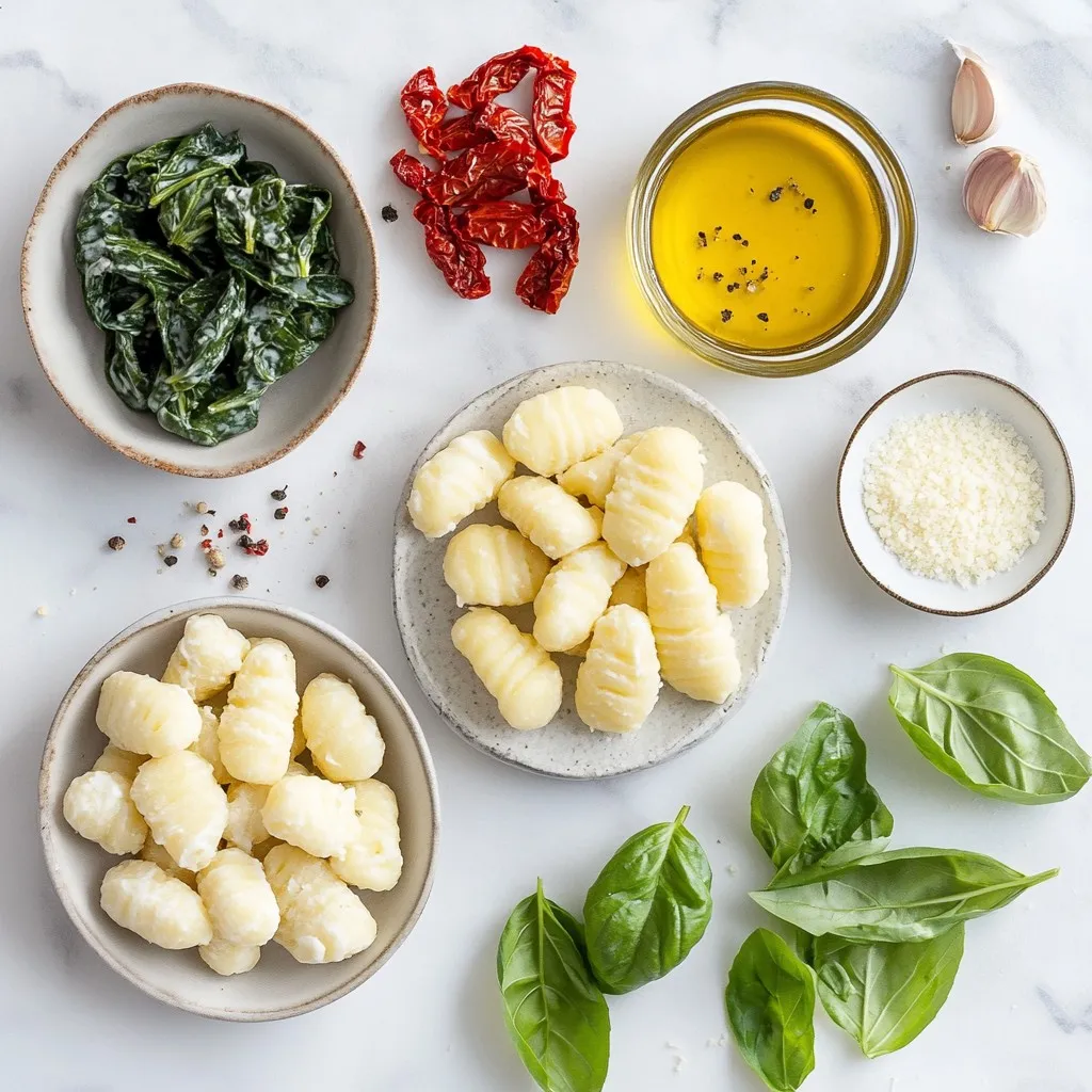 Here are the key ingredients for your Sun-Dried Tomato Gnocchi. Each item plays a big role in taste.